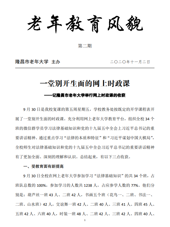 一(yī)堂别開生面的(de)網上時政課--記隆昌市老年(nián)大學(xué)舉行網上時政課的(de)收獲
