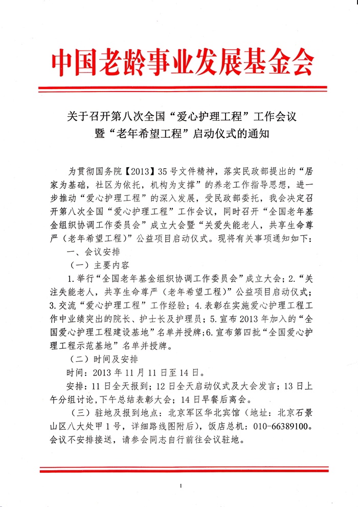 關于第八屆全國“愛心護理(lǐ)工程”工作會議暨“老年(nián)希望工程”啓動的(de)通知