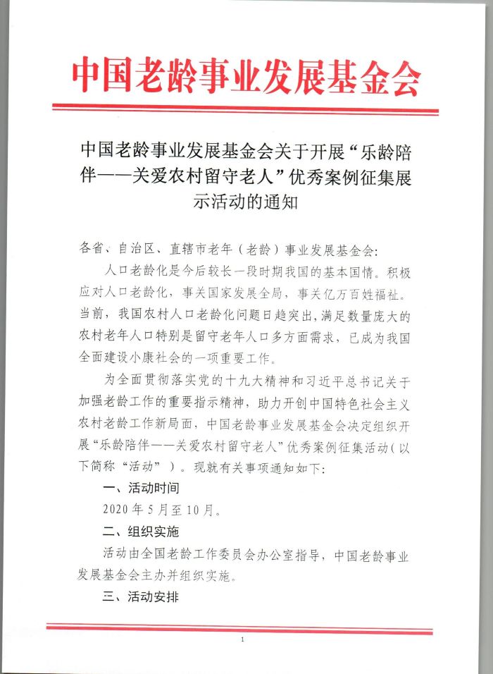 關于開展“樂(yuè)齡陪伴—關愛農村留守老人”優秀案例征集展示活動的(de)通知