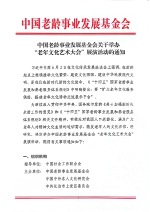 中國老齡事業發展基金會關于舉辦“老年(nián)文化藝術大會”展演活動的(de)通知